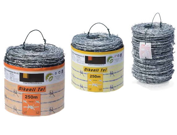 Distance between barbs : 7,5cm – 10 cm - Material: Galvanized barbed wire is a perfect product for challenging conditions with its flawless coating, deterring barbs and a long service life.